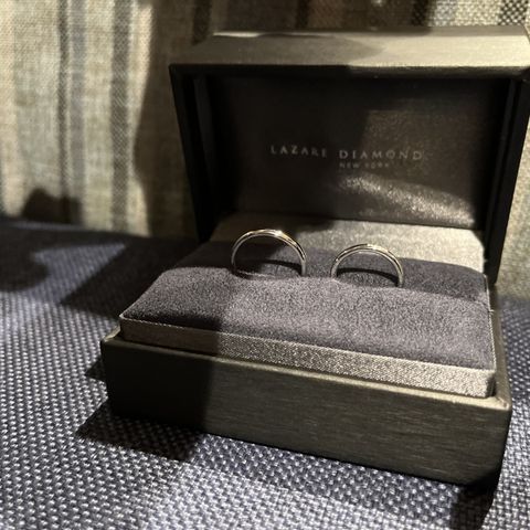 2人とも指が華奢な方なので、細めのデザインを選びました。夫の希望がマットな質感だったこと、私の希望がシンプルすぎないことだったので、2人の意見がマッチするデザインに出会えました。ズレてるデザインも可愛い。