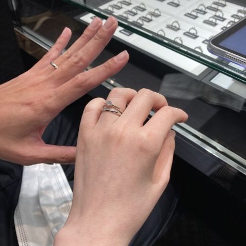 小さなダイヤモンドがいくつもついていて、デザインが可愛いです。着け心地も良くて最高です。指輪が似合わなくて、今までつけたことがなかった2人ですが、今回購入した指輪はそんな私たちにとっても満足のいくデザインです。