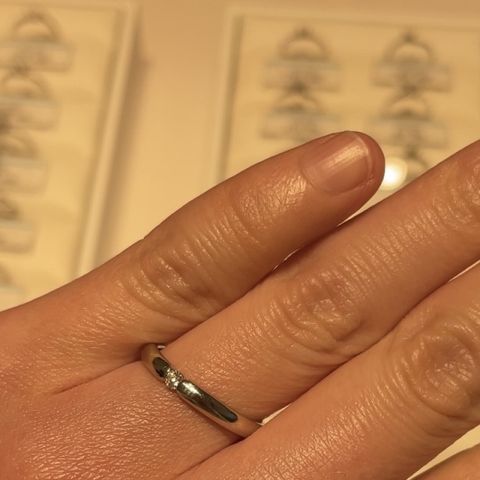 ダイヤモンドが輝いているシンプルなデザインが素敵です!!!手に馴染むデザインかつけ心地もよかったのでこちらで購入することにしました。 新郎のデザインとも統一感があって大満足です!普段使いにもおすすめです!
