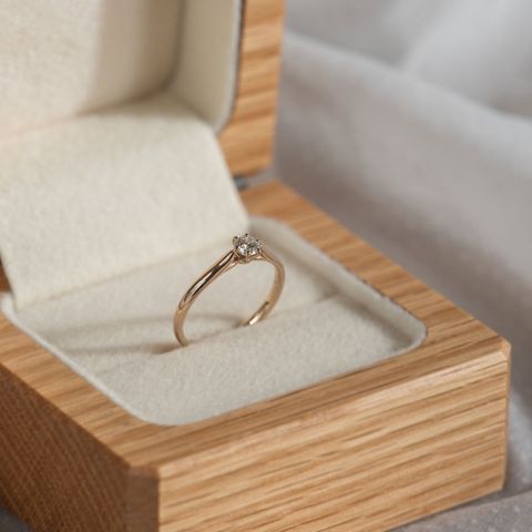 一粒ダイヤで探していました。シンプルなものが好みなだけに、迷いに迷い色々なブランドをまわりましたが、こちらの指輪のダイヤモンドの輝きが違い、決めさせて頂きました。 イエローゴールドの色味が分からず心配していましたが、結果とても満足しています。