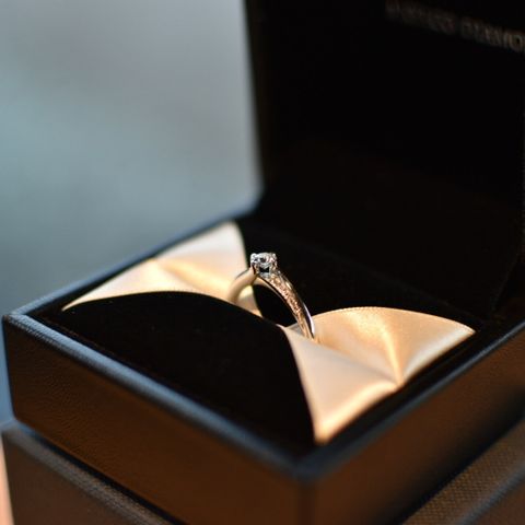 婚約指輪らしいダイヤモンドが目立つシンプルなデザインがお気に入りです。大きめのダイヤを選んでもらったので、そのダイヤが目立つようにリング部分はシンプルなデザインにしました。リングも3種類から選べた点も良かったです。