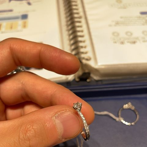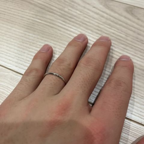 仕事中はつけることができない職種のため、せっかくであればダイヤモンドがある指輪を探していました。 前からと後ろからで見え方が違うリングを紹介していただき、派手すぎず落ち着いたこのリングが気に入ったので購入しました。