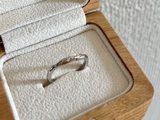 婚約指輪は既に持っていたので、重ね付けして見栄えが良いものを、スタッフさんと一緒に選ぶことができました。斜めに流れるようなダイヤモンドがキラキラと輝いてとても素敵な指輪だと感じています。握る側のリングが細くなっていて、馴染みが良いのも気に入っています。