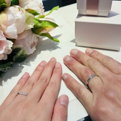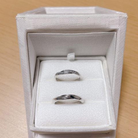 あまり派手すぎず、ダイヤが少しついている指輪を探していました。他社の指輪も見ましたが、メンテナンスや価格などを比較したところ、2人とも理想にあったので決めました! 付け心地も良く、大満足しています!!!