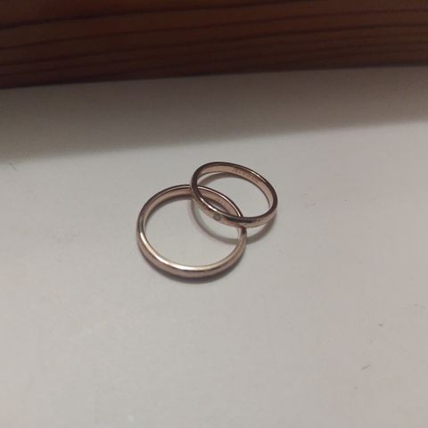 叶える、きれいめ(細)正面ツヤ(ハーフ)とロゼチナ(ツヤ)です。ロゼチナの方はダイヤをつけました。指輪の細さ、形、ツヤかマットか、ダイヤの有無など全て選ぶことができます。シンプルなデザインですが、好みに合ったものに仕上がってとても嬉しいです。