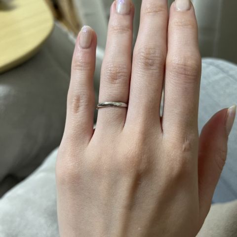 指輪のデザイン、付け心地ともに、とても気に入っています!あまり派手にならない指輪を探していました。ダイヤがたくさんあるのはちょっと、、、と思っていましたが、実際に試着してみると、イメージが変わりました。他社も見学しましたが、付け心地が1番よかったのが決め手です。