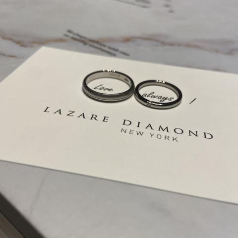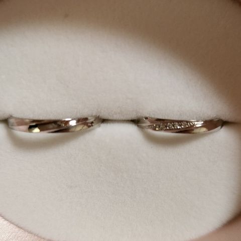 結婚指輪なので、シンプルで長くつけられる飽きのこないデザインにしました。きらきらが好きなためわたしは一つダイヤモンドを入れてもらいました。婚約指輪と重ねてつけても、お互いが引き立ち合いとても素敵です。
