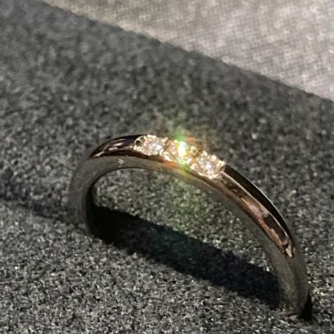 着け心地がとても良いです。 ハーフエタニティですが、何かに引っ掛かるようなこともなく、着けていることを気にせずに生活できます。 絶妙な太さと煌びやかさが気に入り、試着してみていちばんしっくりきたのでこのデザインに決めました。