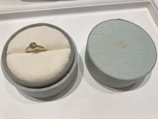 毎日のように着用するものなので、シンプルで細めのものを探していました。また普段着用するジュエリーがゴールドが多いので、ゴールドを探していました。希望通りのリングは見つかったのですが、この3mmの少し太めのものはシンプルな形状でも存在感があったので、迷った結果こちらに決めました。1粒のストーンも上品でポイントになります。