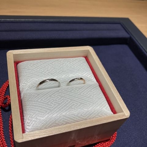自分の気に入ったデザインで自由にツヤ感や色を変えれるところです。内側と外側の刻印はデザイナーさんが提案してくださりとても気に入っています。また純金糸を指輪に結ぶ特別なセレモニーを2人で行うことができ素敵な思い出にもなりました。