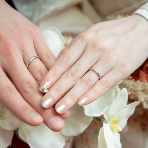 ずっと着けていたいから、着け心地を最優先に指輪を選んだ。緩すぎずきつすぎず、ちょうどいいサイズ感で、とても満足している。また、指輪のデザインについても、お揃いにしたいがそうなるとあまりデザインを選べないかと思っていたが、男性も女性も気に入るデザインが豊富にあり、自分たちの希望に合う指輪を見つけることが出来た。軽くウェーブがかった指輪で、指が綺麗に見えるところが気に入っている。