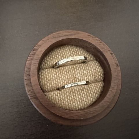 シンプルでありながら手作りのため個性もあり、日常使いしやすいと思います。 私たちが選んだのは「つちめ」と呼ばれる、リングの形にする前に金属を叩き、自分たちで模様をつけるというものでした。 結婚指輪やペアリングはお互いに交換して作ることもできるのは楽しいかと思います。