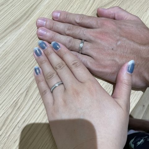 長く使い続けられる指輪を探していたため、鍛造製法で作られて丈夫であることが魅力でした。オーダーメイドで製造ができるため、他の人とは被らない、自分たちの好みの唯一無二の指輪が出来上がりとても気に入っています。