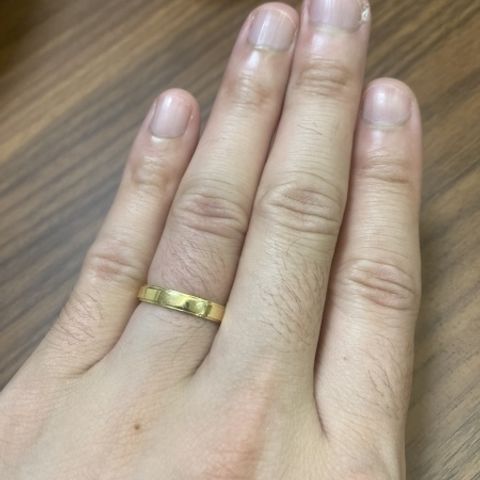 シンプルながらも上品で飽きのこないデザインで、とにかく付け心地が良いです。毎日身に付けるからこそ、違和感なくずっと付けていられるので即決しました。服装や場面問わず身に付けられると思います。指輪の内側に結婚記念日を入れてもらいました。