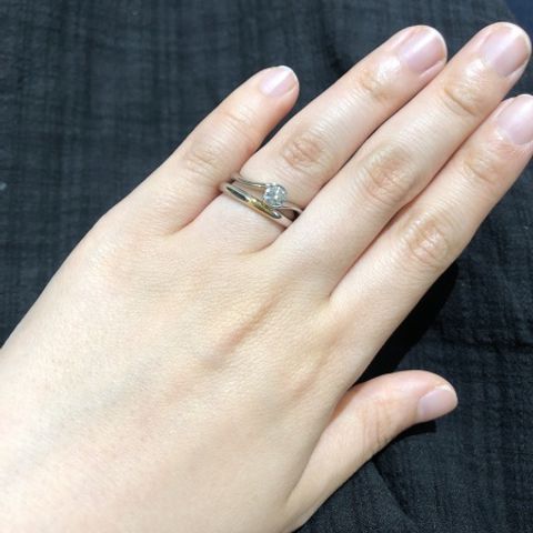 ストレート同士なので、重ね付けしてもしっくり馴染みました。結婚指輪のダイヤは小さいですがそれでもキラキラ輝きます。婚約指輪もサイドのダイヤまでカットがきれいでずっと眺めていれるくらいお気に入りの指輪です。