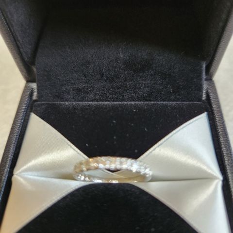 シンプルなエタニティリングを探していて、何店舗か下見にいきました。1石1石がとても美しかったので、忘れられずにこちらに決めました。石の留め方もしっかりしているし、コーティングなども出きるのでお手入れもしやすいです。屋内でも綺麗ですが、実際に着けて屋外へ出るとびっくりするくらい輝きます。