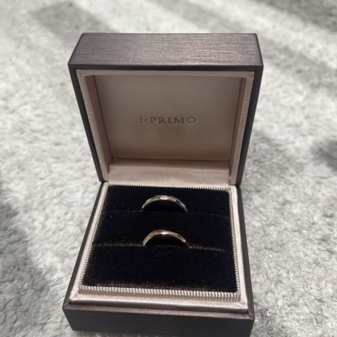セミオーダーとはいっても、豊富なデザインの中から、太さ、色、磨き、石を入れるか、刻印を入れるか、自身の好きなようにカスタムできるので、私たちだけの指輪ができました。 結婚式に向けて、指輪交換の練習を早速しました。笑 色味も形もお揃いにしましたが、これから毎日同じものが指についていると思うと、とても心が温かくなります。