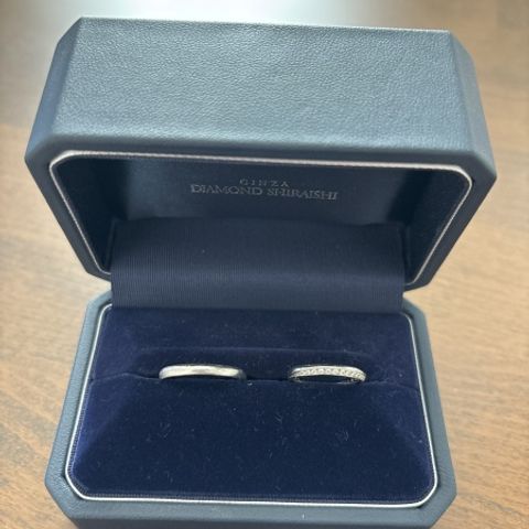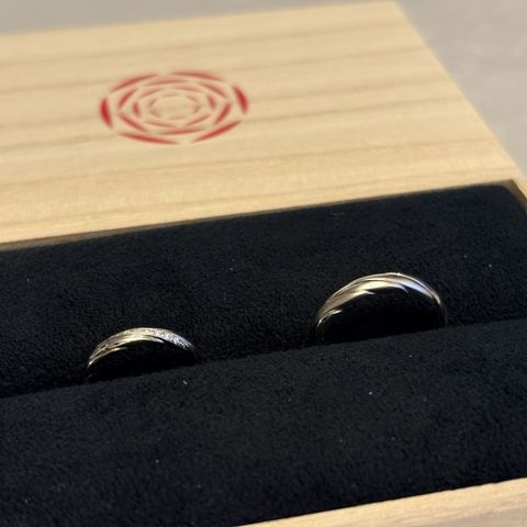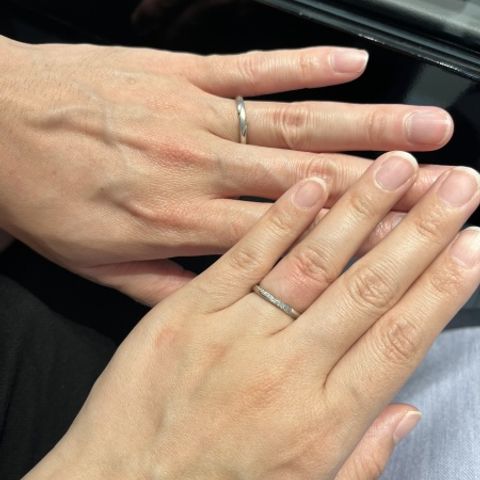 たくさんある指輪の中から2人の意見がピッタリ合う指輪に出会えました。仕事柄派手すぎる指輪はつけることができないので、シンプルだけどオシャレな指輪を探していました。特に男性の指輪は、艶消しの加工がしてあり、他の指輪にないおしゃれなデザインがお気に入りポイントです。