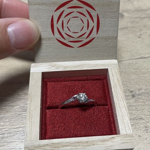 元々は思い出作りとコストを抑える為に、結婚指輪を手作りするだけのつもりだったのですが、旦那がやっぱり婚約指輪も買おうと言い出し、良いのがあればくらいで店頭 に置いてある物を見ていたら、まさかのデザインに一目惚れしてしまい買ってもらいました。