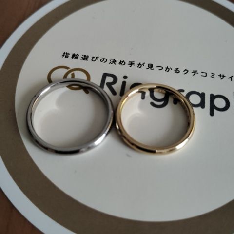 1番シンプルなデザインを選びました。もともとシンプルなデザインが好みであることと、ダイヤ付きだとお手入れが大変そうだと感じたので、こちらの指輪に決めました。 指輪の太さが、少しだけ細い部分と太い部分の違いがあるので、気分によって変えられて気に入ってます!