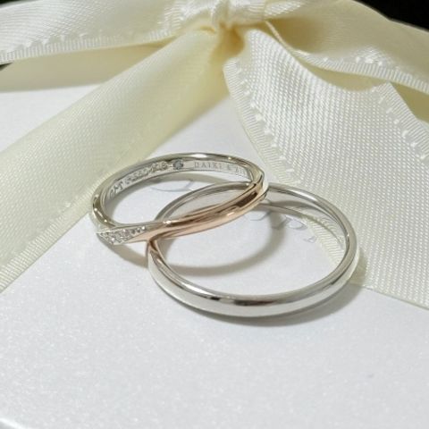 デザインがなかなかないゴールドとシルバーでお気に入りです!色々な指輪を試着して2人で納得のいくデザイン•サイズ•彫刻する文字•書体等を決めることが出来ました! 周りと被るのが嫌だったので自分らの周囲の人にはないデザインを決めました!