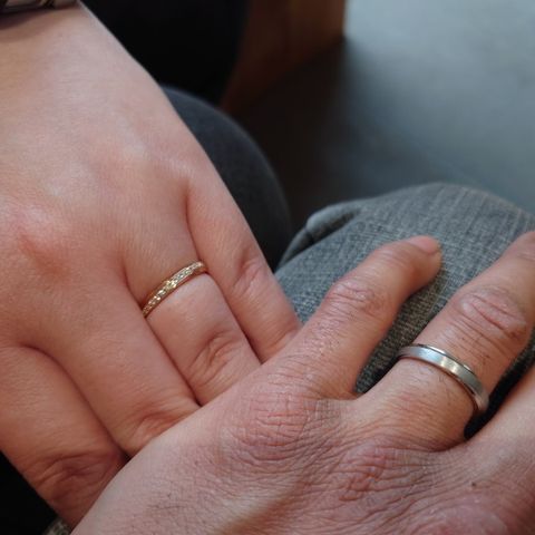 シンプルながらも、刻印内容やダイヤモンドの色、指輪の太さなどを選択することができ、自分たちにピッタリな素敵な指輪になりました。着け心地もよく指への負担も少なく、普段から着用でき、仕事でも付けて作業が可能だと思いました。