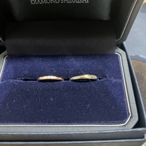他のブライダルジュエリーショップもなん店舗か行かせていただきましたが、品質へのこだわりやダイヤの美しさはもちろん、接客もとても良かったので、ダイヤモンドシライシに決めました。 その時に感じた信頼から結婚指輪もお願いすることにしました。 素敵な出会いができて良かったです。