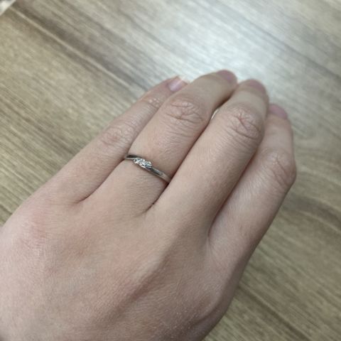指輪はウェーブの具合も丁度良くダイヤの部分もキラキラしていて、とても綺麗でした。 これから何十年も身に付けていく物なので、いつまでもキラキラ輝く指輪に負けないよう私もキラキラ輝いていたいと思いました。