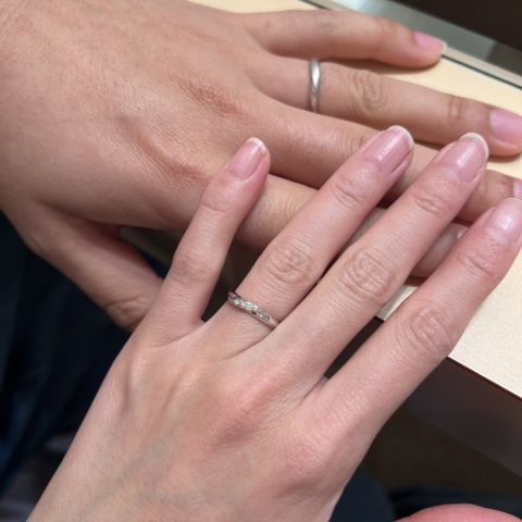 デザインから素材まで幅広く細かく選べて、自分で好きなデザインにできるところがいいと思い、手作りさせていただきました! 数年前にペアリングをシルバーリングで手作りさせていただいたこともありある程度作業はやっていたこともあり細かなデザインにしましたが、スムーズに作ることができました。