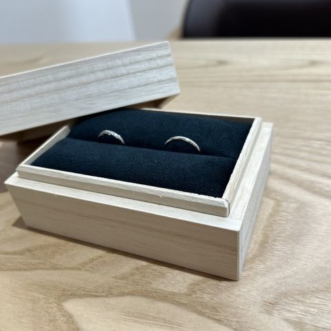 ブランドへのこだわりがなく、シンプルなものを求めていたため手作りに決めました。デザイン自体もとくにこだわりがありませんでしたのでシンプルな作りにしましたが、自分でデザインを選択することも出来ます。また、作ったその日に持ち帰ることができ、慣れない指輪にちょっと違和感持ちつつも、一緒につけて帰れたので嬉しいねと話していました。