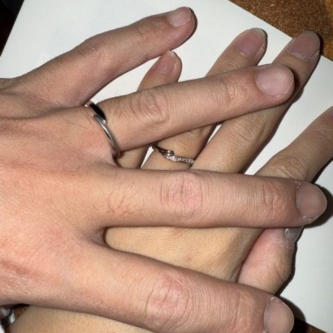 お互いのイメージがあったので、指輪の表面加工をお願いしました。イメージ通りで嬉しかったです。付け心地を確認し、お互いの指にフィットするようオーダーできてよかったです。出来上がりのクオリティーがとてもよく、毎日つけるのがたのしみです。