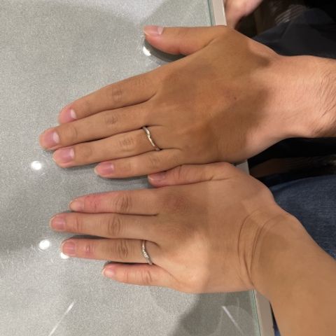 お互いシンプルが好きだったので、長く使い続けることの出来そうなデザインと出会えてよかったです。着け心地もよく、手に馴染む感じがあります。サイズが異なっても、指輪を重ねた時にデザインが重なる点もお気に入りです。