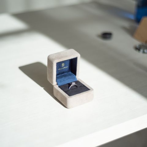 新作の婚約指輪です。 ダイヤモンドを留める爪が5本で桜を表現しています。 裏にもこだわりがあって、おしべのような形になっています。 一石ダイヤですが、光を取り入れやすくゴージャスですがシンプルでとても素敵です。