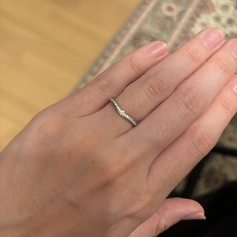 試着を沢山してデザインを比較してみて、最終的に長くつけられるシンプルさを重視して選びました。ダイヤモンドの輝きが目立ち、とてもきにいっています!!私の指に馴染み、バランスが取れており、試着をして選んでよかったと思います。