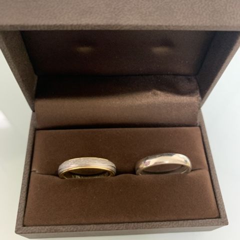 いろんなブランドをみてたくさん悩みましたが、デザインやアフターサービスが気に入り、お店を決めました! 夫とはお揃いのデザインではなかったのですが、似たデザインになりお揃い感が出ました。とても気に入っています。