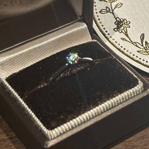 たくさんのお店を回った上で、やはり大きさが私にとって大切だと思い、この指輪を選びました。また、カラットが記念日と関わりのある数字だったので、それも決め手です。夜でも昼でもとてもキラキラでつけていて嬉しくなります。