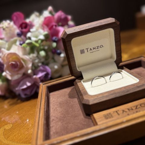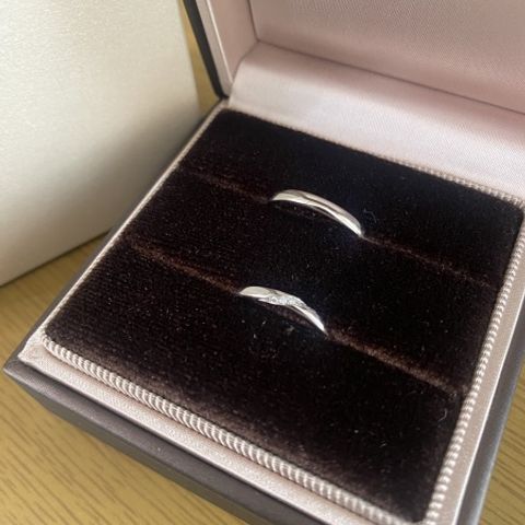 ウェーブのデザインが、わたしのものにはダイヤで、彼のものにはマットの彫りで入っているところがお気に入りです。またわたしの手指が小さいため、細いタイプの指輪にしてもらいましたが、デザイン的にもつけ心地も良いので、小さめの方にはおすすめです。