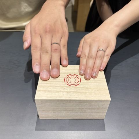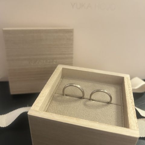 私の指輪は平打ちのつや消し加工と角落とし加工、サイドは鏡面でシンプルな中にも少し遊び心を入れてみました。 妻はダイヤ1石にサイドをスターダスト加工を入れてキラキラ感を出し、どちらも仕上がりにとても満足です!