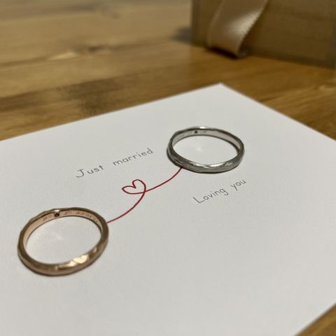 シンプルですが、着け心地がよく気に入っています。 私と夫でデザインが違うものが気に入ったので、同じブランドで別のデザインを購入しました。別デザインですが、2つ並べても全然違和感はありません。 素材も良いものだと店員さんから言われ、ぜひ長く着けたいです。
