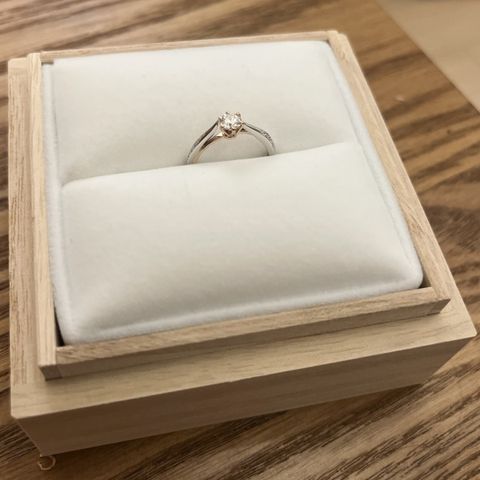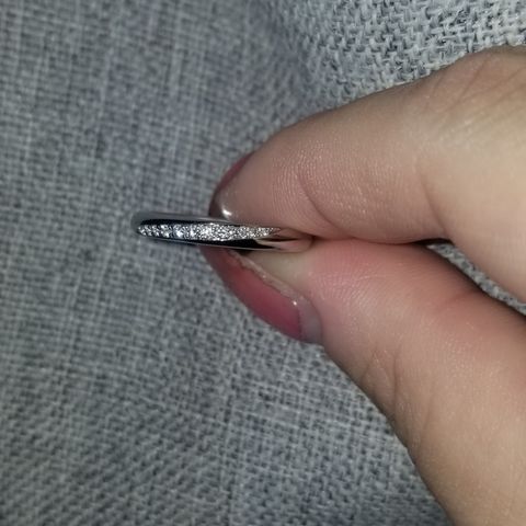 デザインがとても気に入っています。王道で長く使えると思います。他ブランドにも似ているデザインの指輪がありましたが、①中央のダイヤに向かってリングが徐々に細くなっている、②石座がリングから立ち上がっているかつ横から見ても美しいデザイン、この2点を兼ね備えていたのがこの指輪でした。①の形のおかげで指がきれいに見える気がします。 上から見るとキラキラと光を反射してとても美しいですが、ギラギラしすぎず上品です。 指輪の名前がエテルニタ=永遠を意味するのも素敵でした。