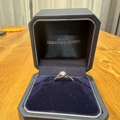 シンプルかつ、長く使えるデザインでとても気に入りました。初めはダイヤモンドなしで考えたのですが、ダイヤモンドシライシさんはダイヤモンドにかなりこだわりのお店だったので、せっかくだと思い、ダイヤモンド入りの指輪に決めました!