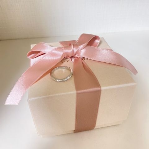 シンプルなデザインですが、少しウェーブが入っており、デザインもされている物を選びました。 一生物になるので、長く使えるようなデザインに一目惚れしました。内側に刻印もサービスで入れてもらえるのでおすすめです。