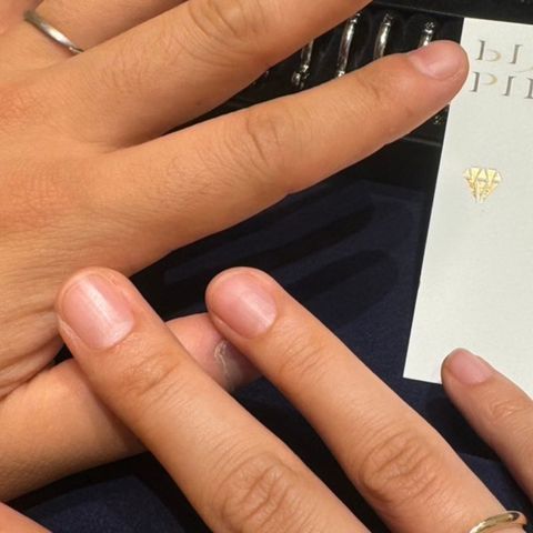 こちらの指輪のデザインは私たち二人の骨格やお肌にあったデザインになっており、どの角度からでも美しく上品に見えます。つけ心地も大変良く、アクセサリーをつけ慣れていない私でもすぐに指に馴染み違和感なく過ごせています。お値段は思っていたよりも高くなくとても良心的です。