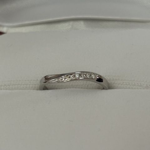 将来十周年で重ね付け用の指輪をプレゼントされるのが夢で、重ね付けがしやすいかつダイヤがついているもので探しました。ダイヤが大きすぎず小さすぎず、普段使いしやすいです。プラチナもゴールドがありましたが、プラチナにしました。
