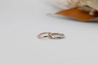 シンプルで内側が少し細くなってるので手が綺麗に見えます。普段使いが出来るようにダイヤモンドは控えめにしましたがいざつけてみるとしっかり華やかでより素敵に見えました。重ね付けがしたいので、結婚指輪選びも楽しみです。