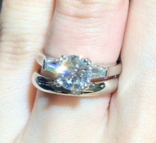 ダイヤモンドの大きさと品質がクオリティが高くてそこが決手になります リングデザインが側面からみても素晴らしくて何年先もつけていられる、女性が運転時などにも側面のデザインも気にいると思います。 輝きが全然他と違います