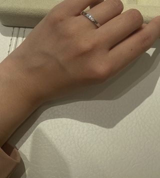指輪=キラキラの憧れはありつつ、仕事柄ダイヤモンドは控えめにしたい。そんなニーズにぴったりのデザインでした。多面カットで、光に当たるとキラキラキラキラ見えてとってもきれいです。 スタイリッシュですが、かたくなりすぎないデザインでバランスがいいです。付け心地もかなり違和感なし。一生つけていくことを考えてもはなまるでした。