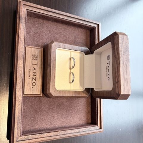 【指輪について】 鍛造製法のフルオーダーで作っていただきました。ミル打ちをベースに作成いただけるところを探していましたが、なかなか鍛造製法ではデザインに縛られがちで苦労しました。 指輪は真ん中より下にミル打ちを入れ、ミル打ちの上を鏡面、下を荒目マットにして仕上げていただきました。 鏡面にもう1アクセント欲しいと言うところに、ミルで境目を作り、荒目マットを入れているところがアクセントとなっていて特別感があるのがオススメです。 【価格などについて】 他社にもいくつかまわりましたが、そもそも鍛造製法ではデザインに縛りが多く、自分の思い通りのデザインにしたいとなるとそれだけ価格が上がってしまいました。それに比べてtanzoさんでは価格も他社と比較すると抑えめで自分の思い描くデザインに仕上げられたのがとても良かったです。