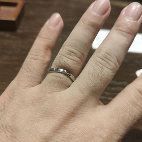角張ったデザインが好きだったので、とても魅力的でした。また、ダイヤモンドを入れることも勧められましたが、あまり煌びやかなものは得意ではなく、ただ少し高級感を出したかったので、マット加工できらきら感も出せてとても嬉しかったです。