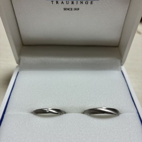 イエベの私でも似合うように、真ん中にピンクゴールドを、旦那様(ブルベ)は、スタイリッシュにマット加工を入れてもらいました。ダイヤモンドも、1つのダイヤから削り出した2つのダイヤを、私は表の1番大きいダイヤに、旦那様は内側に入れてもらい、2人のイニシャルも、デザイナーさんが、私たちの話や雰囲気から考えてくださったものを入れました。 ふたりのこだわりを、綺麗にまとめてくださった、夫婦共々お気に入りのリングです。